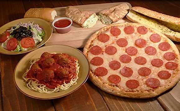 Large 15" Cheese Pizza, Choose Any Pasta, Calzon, Large Dinner Salad, G